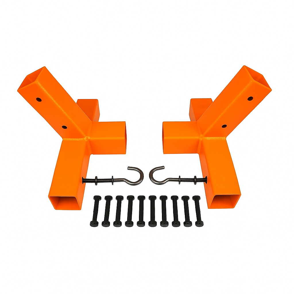 Estos conectores metálicos están diseñados para construir estructuras resistentes y estables para hamacas. Fabricados en acero robusto con un recubrimiento en pintura color naranja, ofrecen gran durabilidad y resistencia a la intemperie.